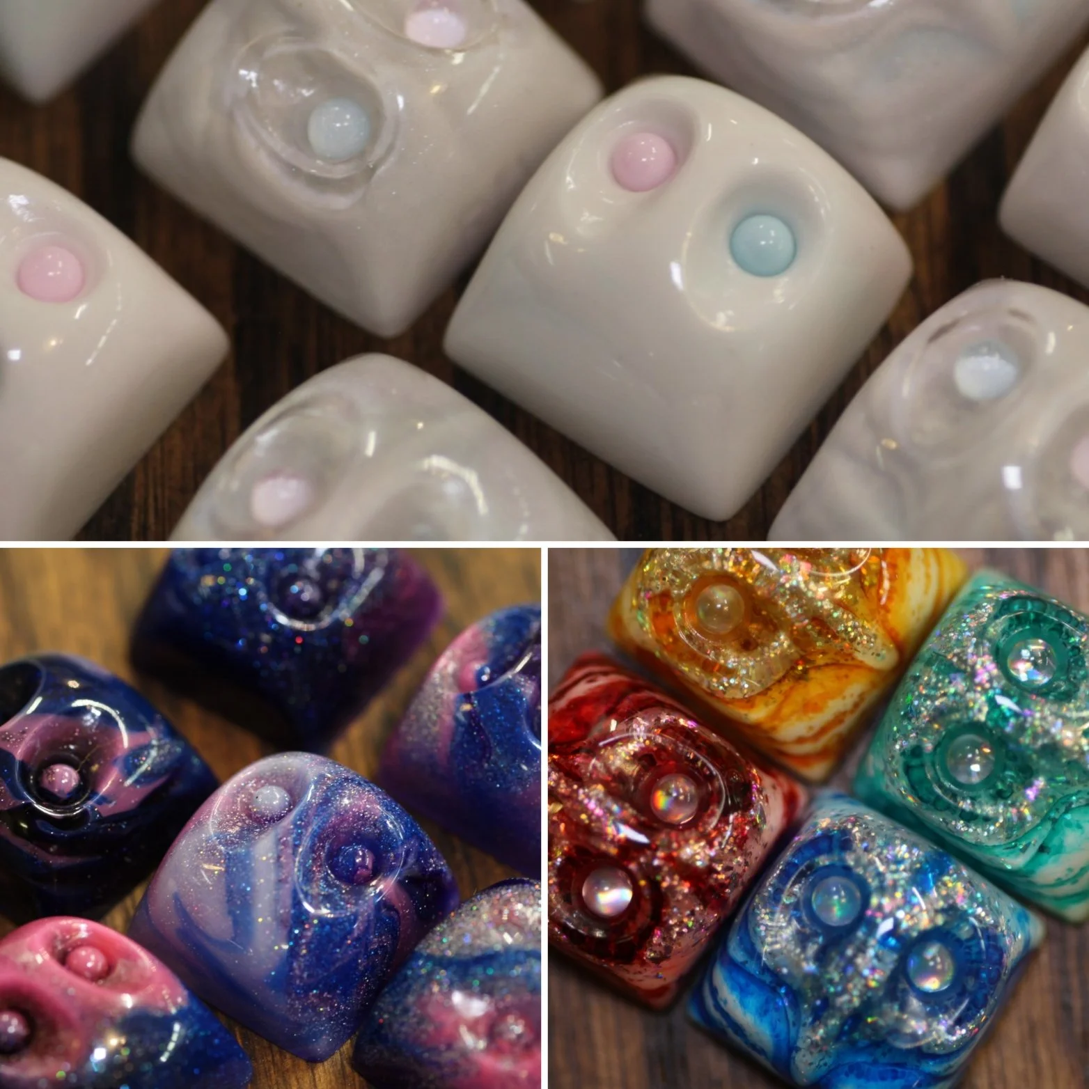 a special mix of random Watcher X keycaps made from leftovers and extra bits! Including unreleased colors such as dark green and pearlescent pink only available from this grab bag! I'll be throwing in some free random extra eyes to a few lucky winners as well!
